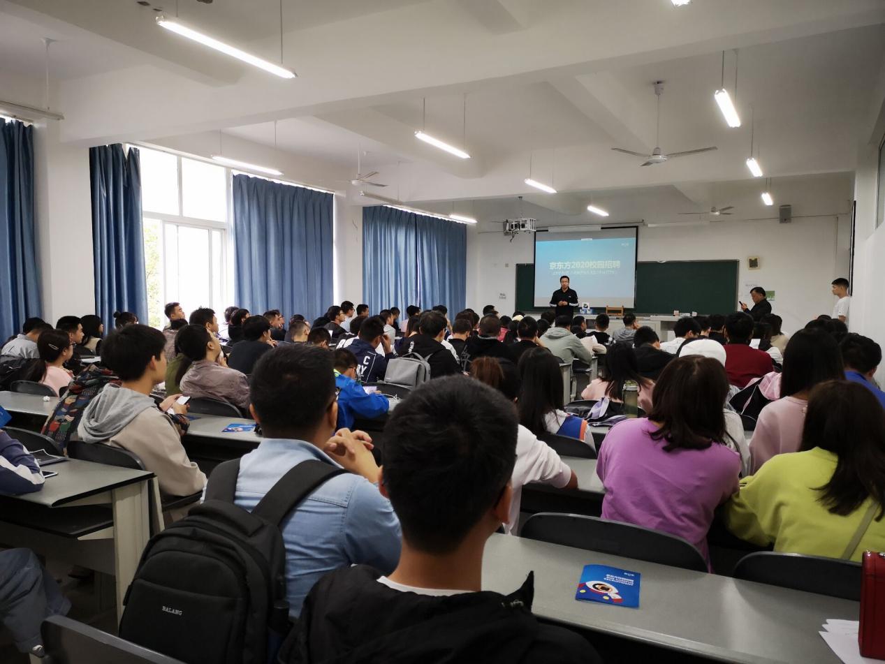 “2019年电子工程系毕业生推荐就业推进活动” 时间如白驹过隙,一闪而过。金秋九月送金秋,又是一年就业季。为了切实做好我院毕业生就业工作,大力构建毕业生与用人单位的交流平台,积极为用人单位输送应用型人才。近日,京东方公司在四川航天职业技术学院为电子工程系的同学们做了专场宣讲招聘会,此次宣讲招聘会得到了电子工程系2020届毕业生的广泛关注,学生积极主动参加本次宣讲活动,深入了解就业情况,投递个人简历。 京东方科技集团股份有限公司(BOE),创立于1993年4月,是一家为信息交互和人类健康提供智慧端口产品和专业服务的物联网公司。BOE在北京、重庆、合肥、鄂尔多斯等地拥有多个研发、制造基地。京东方科技集团股份有限公司西南区业务布局:四川、重庆、云南,各地公司发展状况良好皆有其自身特色。该公司此次招聘宣讲会主要提供了设备维修、品质检测、制造管理三大就业岗位。根据需求用人单位不仅提出应聘者要求而且拋出相关福利橄榄枝。首先,招聘要求大专及同等学历,学生干部、成绩优异者、理工科优先,主要涉及机械、电子、电气计算机等专业。第二,该公司要求被聘者身体健康、行为端正、能适应能力强并且具备一定英语基础。第三,京东方公司提出了发展晋升,实行职级、职务双通道发展模式,提供最大化的发展晋升空间。最后,京东方公司展示出薪资福利,实习薪资除基本薪资外还有各类津贴,还包含五险一金、餐补、住宿、年度体检等众多福利。 具有航天精神的电子工程系学生不仅在理论知识方面有扎实的基本功,而且在实训操作方面也有着过硬的专业技术,秉承“文行忠信,言慎细实”的校训,具有高尚的个人品质。面对日益紧张的就业形势,电子工程系2020届毕业生们更清楚的了解到当前就业形势的严峻,经面试已有部分同学确定为预录人选,期待后前期的复试结果。通过此次专场招聘会,希望同学们能够增加明确的知道自己的人生目标。