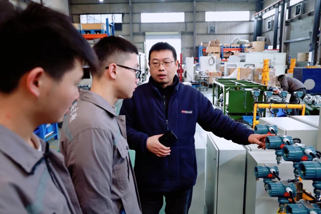 此次参与任务的四名学生经过“钱学森英才班”的严格选拔与系统训练,均已考取低压电工操作证,具备坚实的专业理论基础和较强的动手实践能力。在学院电工组教师的指导下,同学们仔细识读电气图,熟练掌握工业接线工艺,严格遵循“走线规整、接线牢固、标识清晰”的作业规范,将课堂所学应用于生产一线。面对机柜内数以百计的接线端子与复杂的控制线路,充分发挥专业所长,灵活优化接线逻辑,通力协作、规范操作,成功协助企业技术团队完成机柜全流程接线施工的专项任务,以零差错交付合格成果。