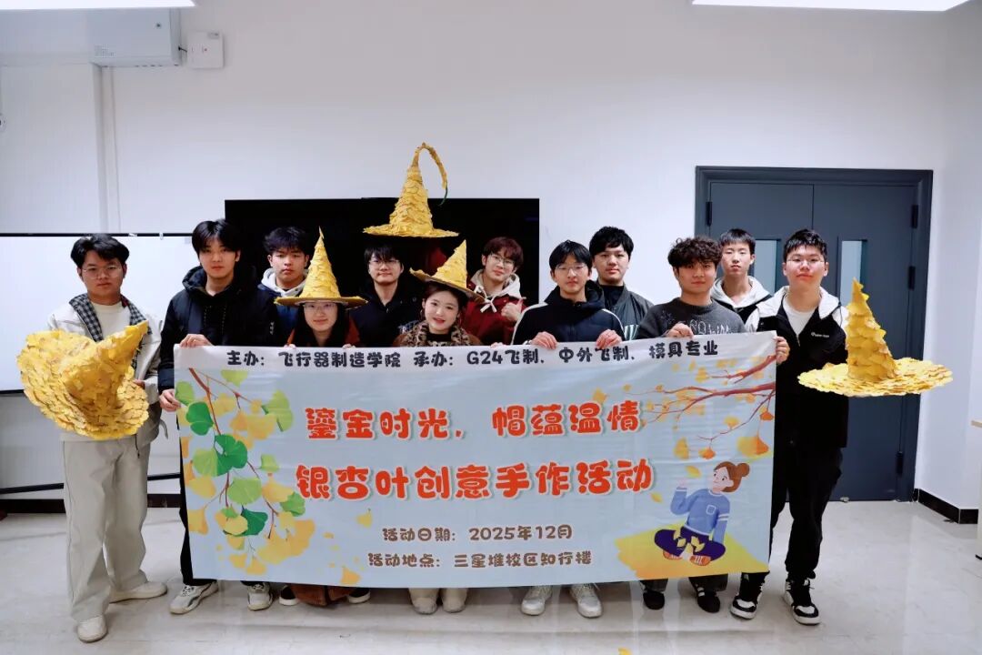 “一叶知秋,一帽蕴情。”本次银杏叶创意手作活动,是飞行器制造学院推动“五育并举”、丰富第二课堂的生动实践。它不仅仅是一场手工活动,更是一次自然美学的体验课、一次环保理念的践行课、一次同窗温情的促进课。活动引导同学们善于发现身边的美,利用自然材料进行创造,将瞬间的风景转化为永恒的创意,真正践行了“留住金色的回忆”这一美好初衷,为校园文化生活增添了一抹温暖而亮丽的色彩。