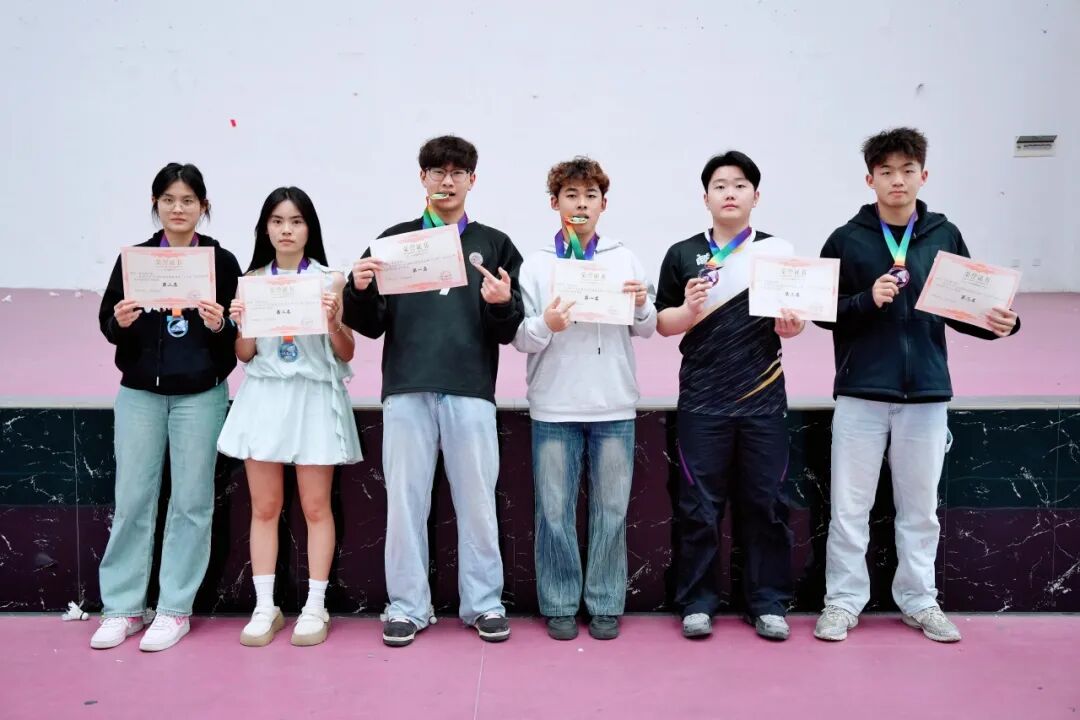 赛场上,球拍起落,白羽飞扬,青春的热浪席卷整个赛场。选手们以饱满的热情、敏捷的身手和顽强的意志,展开了多轮激烈角逐。每一次精准的扣杀、巧妙的吊球与默契的配合,都赢得了现场观众的阵阵喝彩,充分展现了学院学子敢于拼搏、团结协作的优良品质。经过激烈比拼,各项目奖项逐一揭晓。混合双打项目中,刘于铭、肖逍组合凭借出色发挥摘得桂冠,赖虹、刘棋燕组合荣获亚军,王爽、刘艺豪组合获得季军。男子单打项目中,刘艺豪技压群雄夺得冠军,赖虹、肖逍分获亚军和季军。