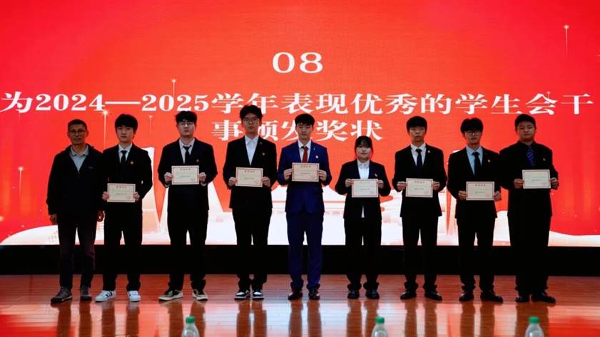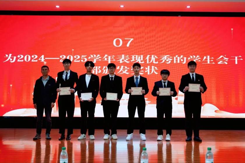 新当选的第18届学生会主席团成员及各部门负责人依次上台,进行了简短的自我介绍,并表达了服务同学的决心和开展未来工作的初步设想。演讲结束,全体新任学生会干部进行了庄严宣誓。随后,党总支书记徐锐为2024-2025学年优秀学生干部、优秀学生干事颁奖,以表彰他们在任职期间的出色表现和模范带头作用。