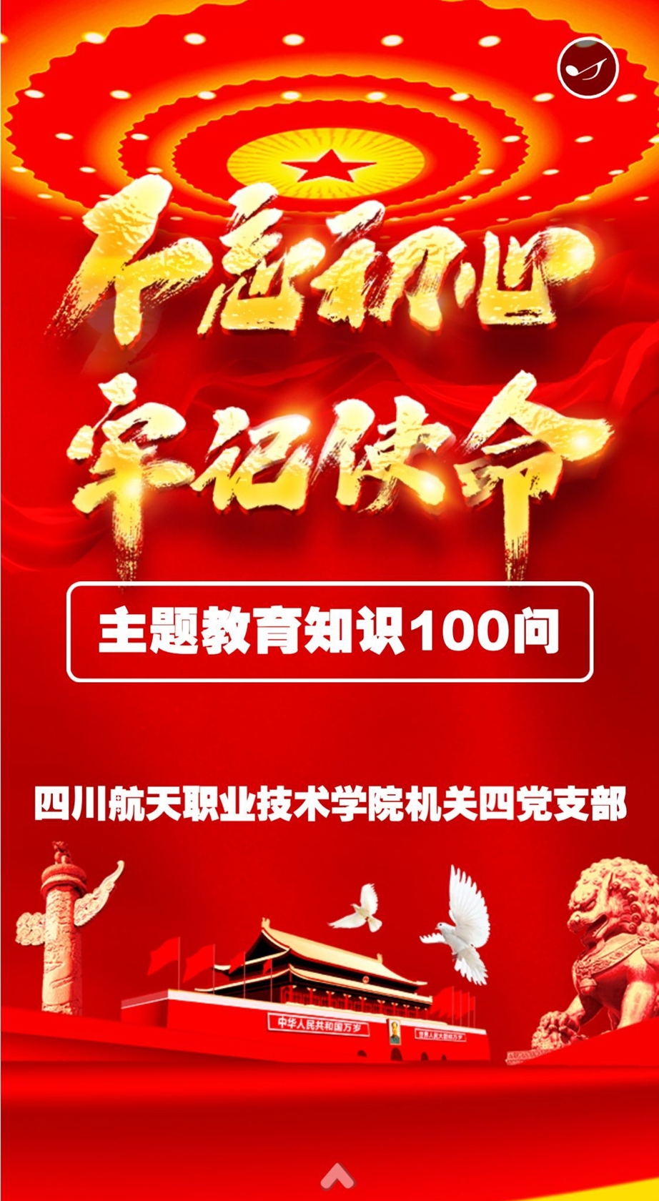 小程序包括“不忘初心、牢记使命”知识要点、党的十九大知识点、党章知识要点、习近平总书记对航天强国重要指示、新时代高校师德师风建设知识要点、学院2019年党政相关工作要点等100问,图文结合,内容全面。最后还设有党员学习心得交流,可以让党员们积极分享、畅所欲言。这个小程序由机关四党员工用H5软件自制,有制作简便,成本低廉的特点。