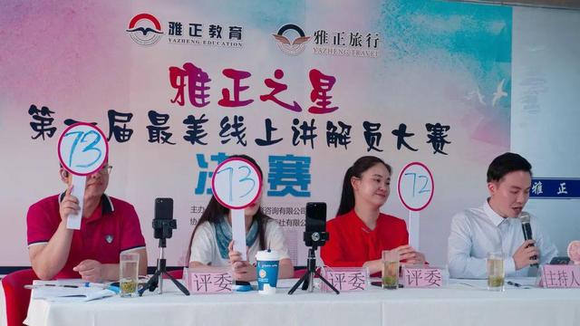 本次大赛是由成都市雅正教育咨询有限公司主办,四川省雅正国际旅行社和导游考试在线题库协办,全国导游技能大赛总冠军卫美佑、文化学者唐承焱、成都市旅游局专家库成员贺亚萍担任评委。比赛通过现场抖音直播连线的形式进行,评委现场打分,现场亮分,观众通过抖音直播观看助力!初赛共有来自全国147所本专科院校333名选手报名,经过激烈的初赛作品比拼,60名选手入围决赛。决赛当天,来自全国51所院校的57名选手依次在抖音平台连线“雅正教育”官方直播间进行景点讲解展示。