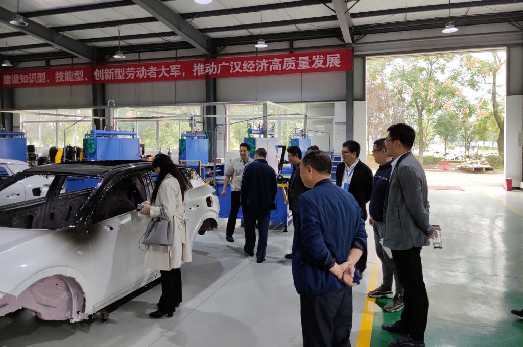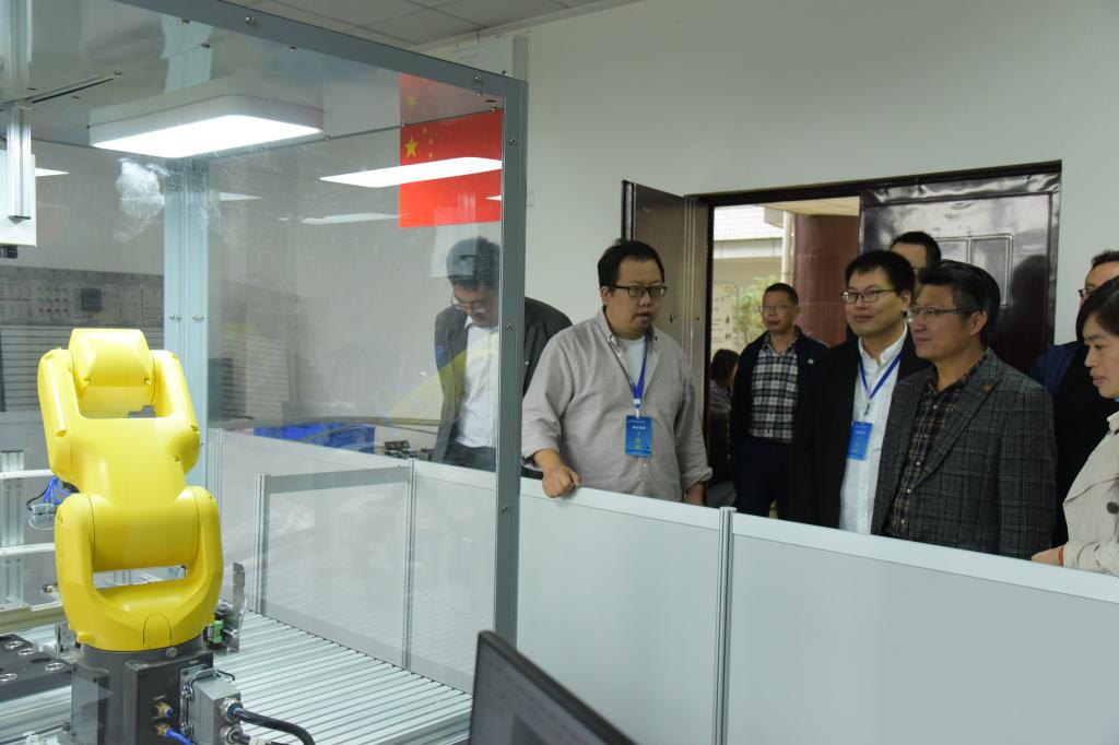 戚炎副院长陪同参观了学院实习厂、汽车实训中心、焊接实训中心、上汽大众高技能人才联合培训中心以及工业机器人实训室。