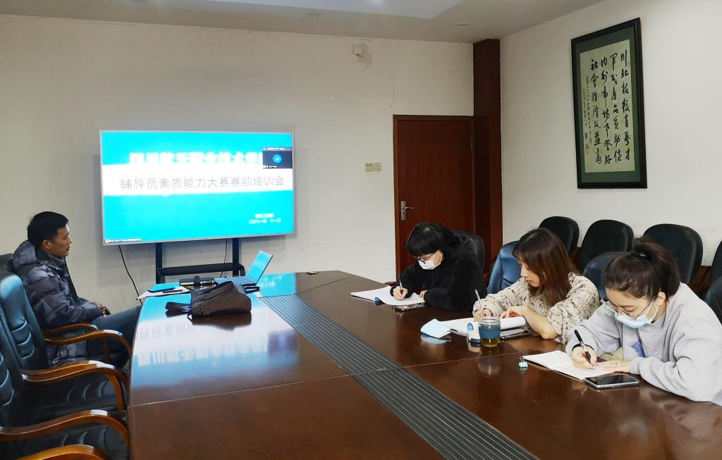 为了落实四川省教育厅关于举办第八届全省高校辅导员素质能力大赛的文件精神,学院各系部推送了14名优秀骨干辅导员积极备赛。11月9日,学生工作部组织了本届备赛选手的赛前培训会,疫情当前,大家克服了小区封锁、隔离在家、全员核酸检测等困难,全部参加了本次培训会。