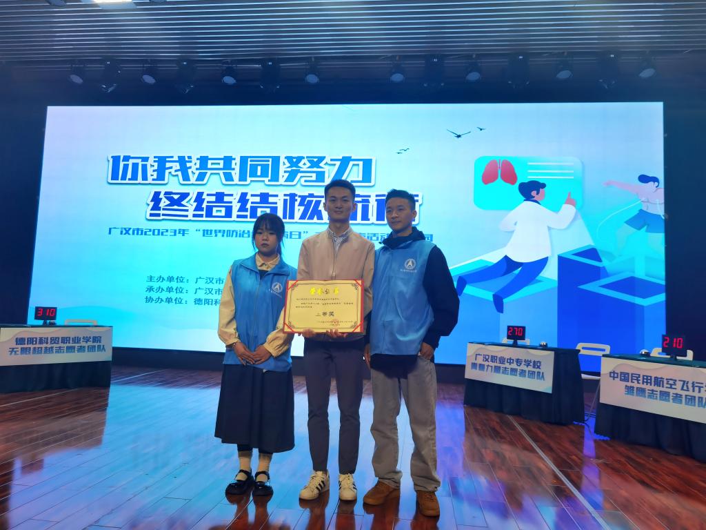 主题知识竞赛中,由学院后勤处老师及两名学生组成的参赛队伍经过激烈的角逐,代表学院荣获了广汉市2023年“世界防治结核病日”校园结核病防治知识竞赛二等奖。