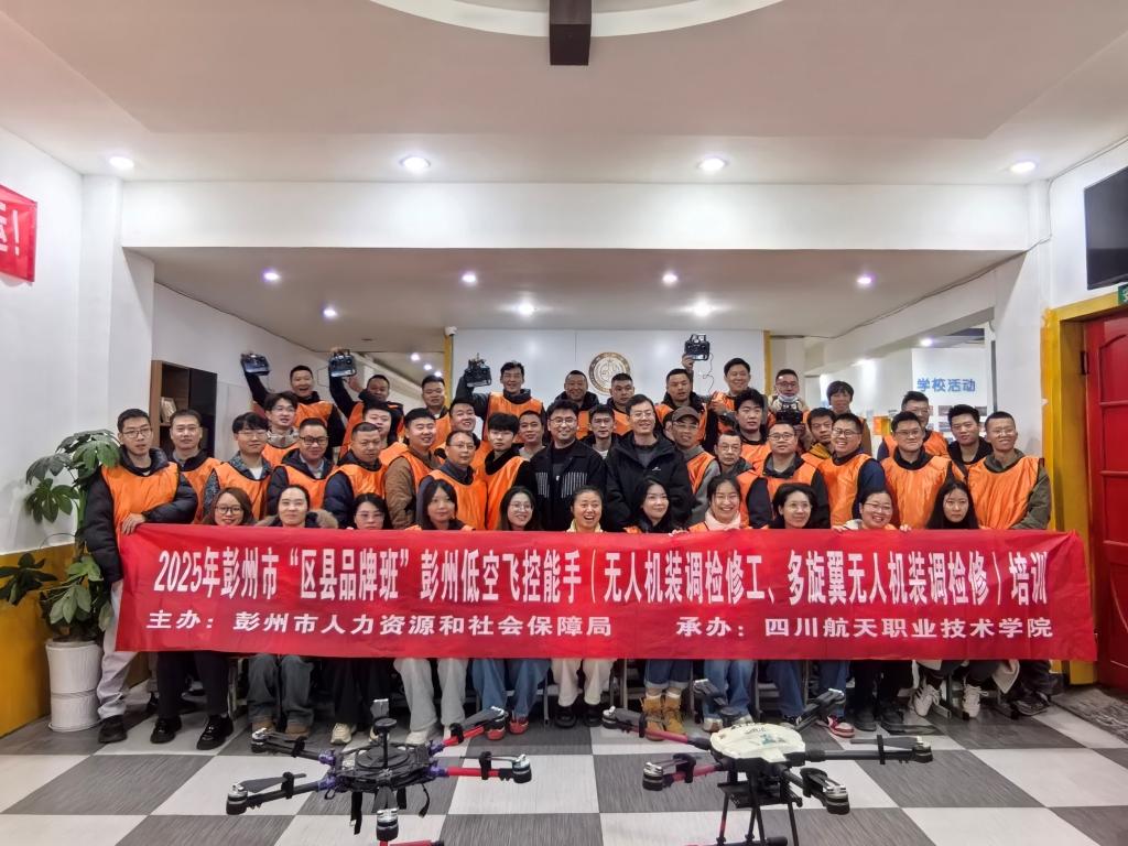 2025年11月29日,由彭州市人力资源和社会保障局主办,四川航天职业技术学院承办的第二期“彭州低空飞控能手(无人机装调检修工、多旋翼无人机装调检修)”区县品牌班培训,在彭州市天一广场正式开班。学校相关人员、培训学员共50余人参加了开班仪式。