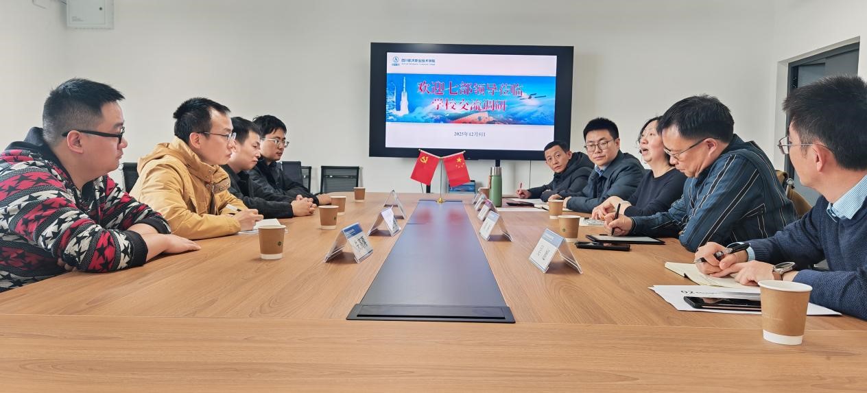 2025年12月5日,学校与四川航天技术研究院七部校企合作研讨会在学校三星堆校区知行楼E322会议室顺利召开。双方围绕产教融合、人才培养及数据分析等重点领域展开深入交流,共同探讨合作发展的新路径。参会人员包括七部三室的王翔副主任,朱高璨副主管设计师,刘杰副主管设计师,倪铭副主管设计师,学校党委副书记彭玲、副校长周林、计算机学院院长高秀东、副院长吴旭、人工智能与大数据专业负责人陈阳。