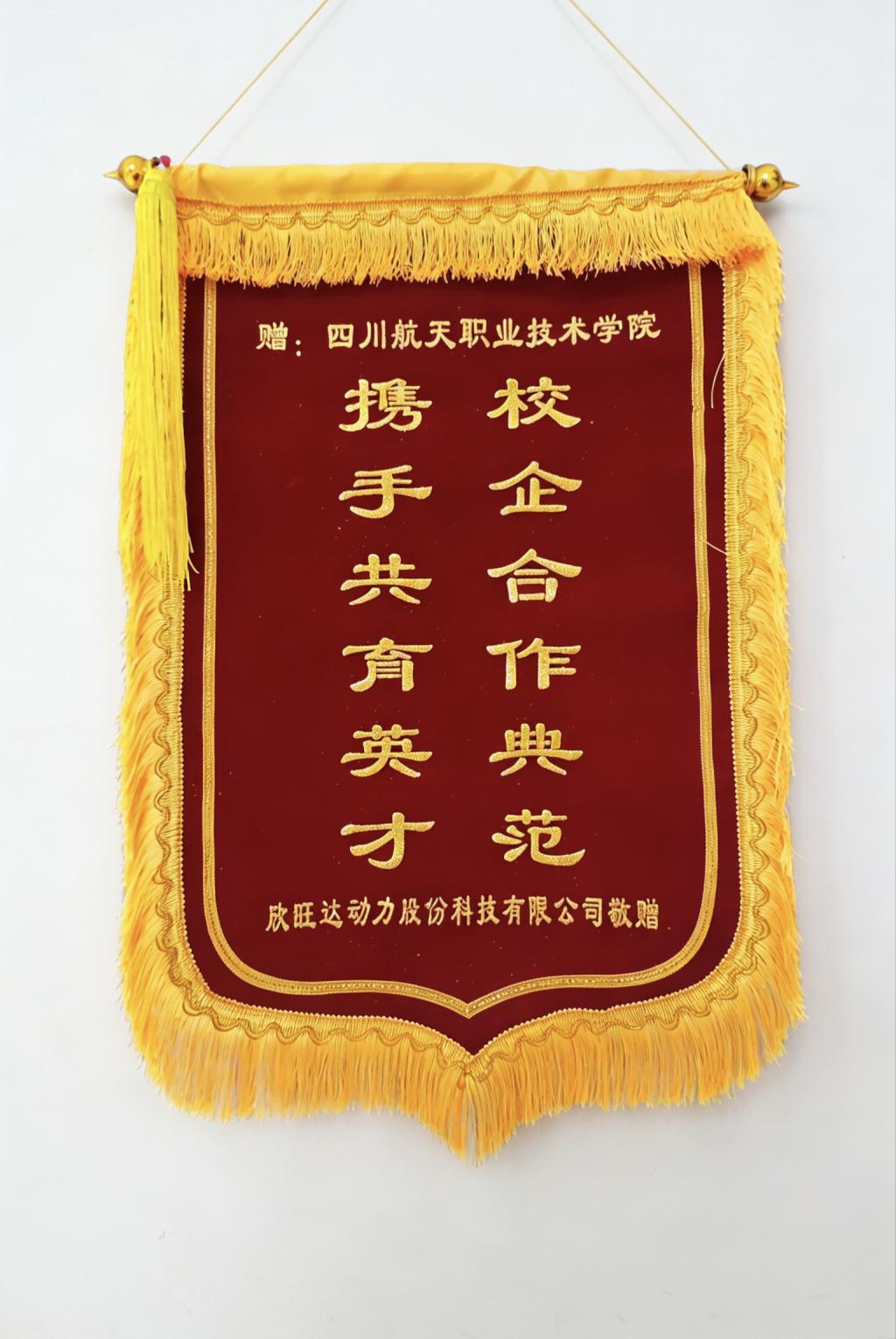 此次走访合作中,学校的人才培养质量和就业服务工作得到企业充分肯定。招商积余四川分公司授予我校“优质校企合作人才培养基地”牌匾,宁德时代新能源科技股份有限公司为我校颁发“人才培育贡献奖”牌匾;欣旺达动力科技股份有限公司、若光文化传媒集团分别向学校赠送锦旗,以此表彰我校在人才输送、校企合作等方面的突出成效。