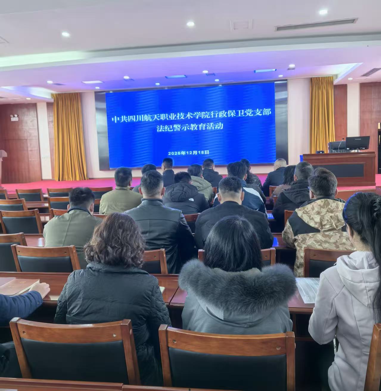 为深入贯彻落实全面从严治党要求,切实加强支部党员法纪意识和廉洁自律意识。12月18日,行政保卫党支部组织全体党员前往金堂县监狱现场开展法纪警示教育活动,通过服刑人员现身说法、观看以案释法警示片等形式,全体党员接受了一场深刻的思想洗礼和法纪教育。