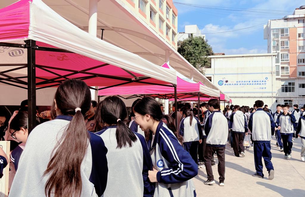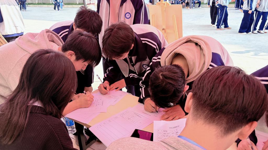 活动现场气氛热烈有序,各部门精心设计的招新海报整齐排列、创意十足,成为校园一道亮丽风景线。