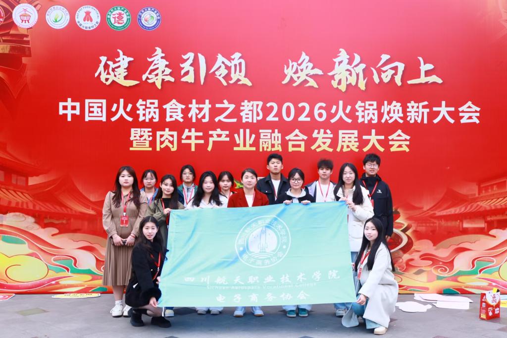 四川航天职业技术学院人文与管理学院杨艺老师带领电子商务专业学生走访了火锅焕新、肉牛产业建圈强链相关企业,观摩企业生产,了解“中国火锅食材之都”区域优势、营商环境及发展规划,对企业用人需求等进行了调研。随后师生们为大会提供了精彩高效的直播服务,为推动肉牛产业与火锅食材产业深度融合、促进火锅行业高质量发展贡献了航院“新”力量。
