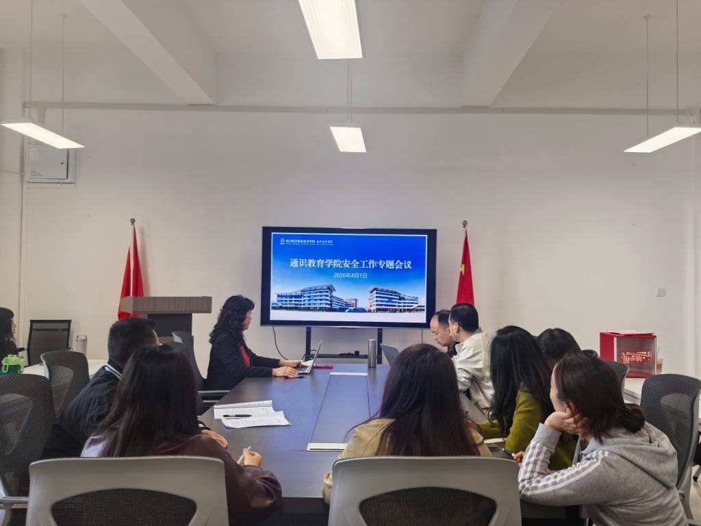 为深入贯彻落实学校 2026 年安全工作部署要求,切实筑牢校园安全防线,保障学院教育教学工作平稳有序开展,4 月 1 日下午,通识教育学院在知行楼 F344 会议室召开安全工作专题会议,学院全体教职工参会。