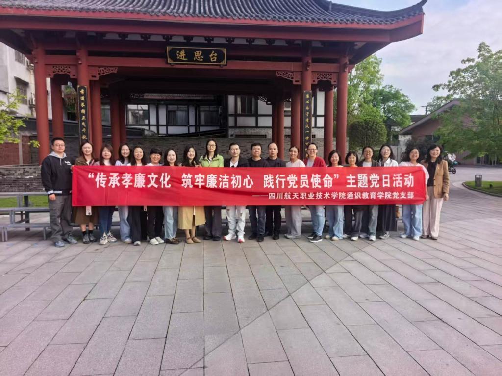 为深入推进廉洁文化建设,引导党员传承优良家风、强化廉洁自律意识,2026 年 4 月 8 日下午,通识教育学院全体党员及群众前往孝源里・四川省廉洁文化基地,开展以 “传承孝廉文化・筑牢廉洁初心・践行党员使命” 为主题的沉浸式主题党日活动,以实地研学推动廉洁教育与党性教育深度融合。
