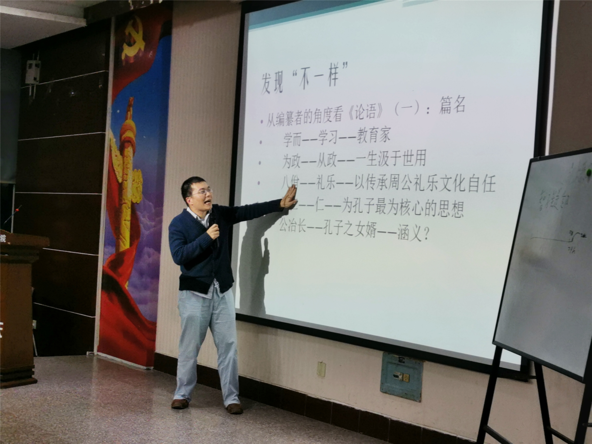 11月4晚,共青团成都市委和学院团委联合举办的“青年讲师团”集中宣讲活动在龙泉校区南阶梯教室成功举行。此次宣讲邀请四川师范大学哲学研究所副教授潘忠伟博士以《发现不一样的〈论语〉》为题为在场师生讲解了不一样的中华优秀传统文化。学院团委老师、基础教学部团总支老师及龙泉校区270余名学生代表参与讲座。