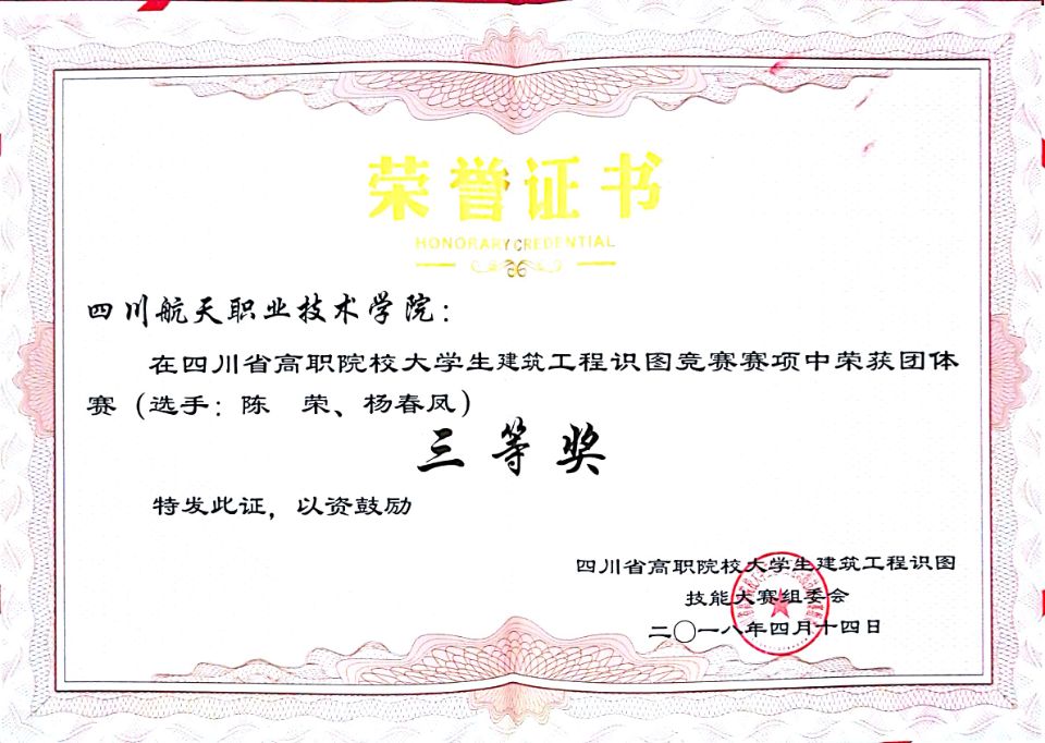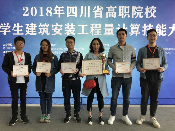 由四川省教育厅主办、四川建筑职院承办的2018年四川省高职院大学生建筑安装工程量大赛和2018年高职院校大学生建筑工程识图竞赛,于4月14日在四川建筑职业技术学院德阳校区举行,我院参赛学生团队在刘虹贻、田野和严萌三位老师的带领和指导下,选派的同学凭借扎实的基本功和精湛的技能经过激烈的比拼,最终脱颖而出,分别荣获团体一等奖和团体三等奖。