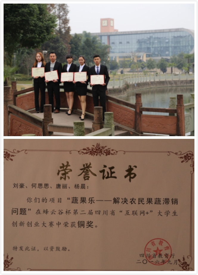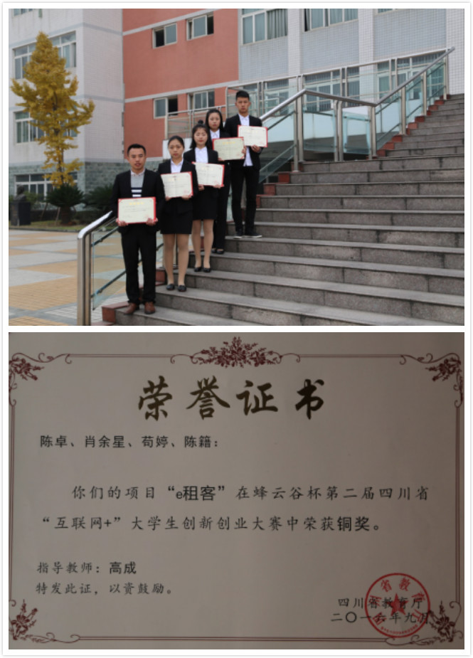 该比赛在6月下旬完成了校园选拔赛。 8月20号-27号期间组织参赛选手到校由指导教师高成集中培训。8月30日—9月3日,根据省教育厅的参赛要求,按项目报名数的5%比例推荐项目参加了省级复赛。9月10日,省级决赛在西南石油大学举行。我院管理系的“蔬果乐”、“旅途家”和“e租客”三个项目最终获得铜奖。