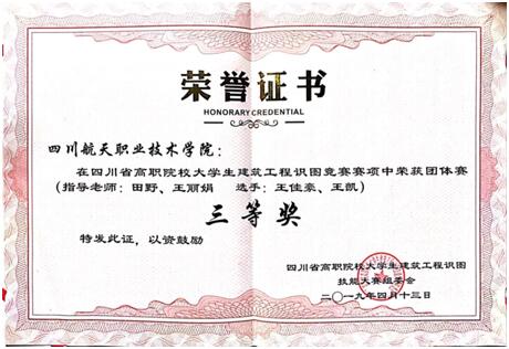 2019年4月13日,四川省高职院校大学生建筑安装工程量计算技能大赛落下帷幕。在此次比赛中,由刘虹贻、田野、向铮老师指导的参赛队荣获省二等奖。 本次比赛由省教育厅主办,四川建筑职业技术学院承办。共有四川建筑职业技术学院、四川交通职业技术学院、成都职业技术学院等33所高职院校参赛。赛事共经历手算土建、手算安装、电算土建、电算安装共计4场比赛,共计6小时。我院管理工程系学子施宇、邓琪、曹汝亮顶住压力,最后取得了省级二等奖的优异成绩,体现出了航天学子严慎细实的优良品质。 2019年4月13日,在四川省高职院校大学生建筑识图技能大赛中,由田野、王丽娟老师指导的参赛队荣获省三等奖。 本次比赛由省教育厅主办,四川建筑职业技术学院承办。共有四川建筑职业技术学院、四川交通职业技术学院、成都职业技术学院等37所高职院校参赛。此次技能大赛共分建筑识图、建筑制图共计两个赛项。我院管理工程系学子王凯、王佳豪代表建筑学子参赛,取得了省级三等奖的优异成绩。 2019年4月18日-19日,管理工程系施凯、唐小强,郭凤双、王丽带领两支学院代表队学生参加四川省高职院校测绘技能大赛,本次比赛由省教育厅主办,四川交通职业技术学院承办,共有33所高职院校,63支队伍参赛。竞赛分“二等水准测量”和“1:500数字测图”两个赛项。经过两天激烈的比拼,我院代表一队荣获“二等水准测量”项目团体二等奖,我院代表二队获得“二等水准测量”项目团体三等奖,“1:500数字测图”项目团体三等奖。 管理工程系 供稿