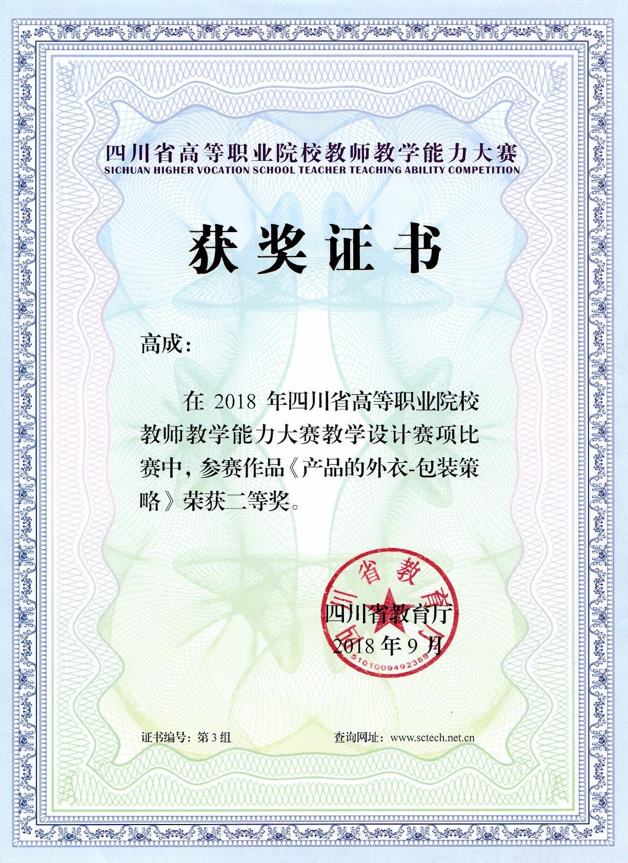 2018年9月在成都举行的四川省高等职业院校教师教学能力大赛的圆满落幕,本次大赛是由教育厅主办,成都航空职业技术学院承办,在以往四川省高等职业院校教师信息化教学大赛的基础上开展延续的目前规格最高的教师类比赛。今年参赛的学校包含全省50多所高校近百个院系,初赛团队和作品达1000多份,复赛600多份作品,竞争相当激烈。我院管理工程系高成老师顺利进入决赛角逐等级奖项,其教学能力大赛作品《产品的外衣-包装策略》获得省级二等奖,是全省一二等奖中唯一以个人身份参赛的老师。