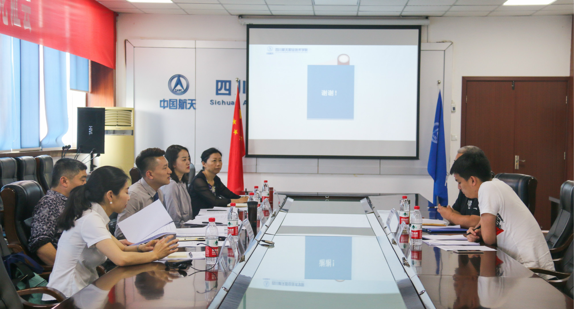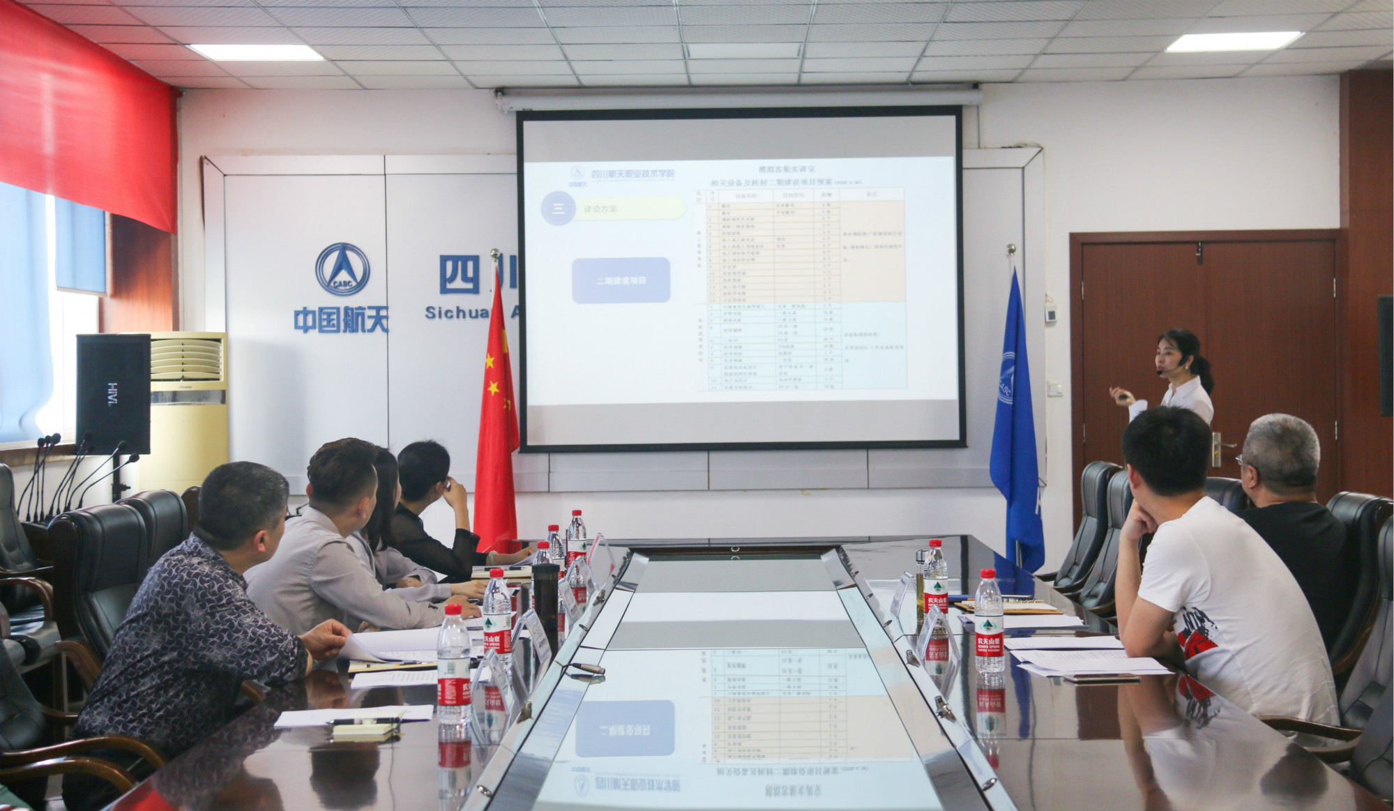 2018年 5月 15日星期二下午两点半,我院在致远楼会议室召开了空中乘务专业模拟客舱实训室建设方案专家论证会。出席论证会的专家有:四川长江职业学院空乘专业负责人岳亮、四川航空股份有限公司头等舱乘务员张琢雅、四川航天职业技术学院教务处长王德佩、四川航天职业技术学院财务处长赵吉玲、四川航天职业技术学院空乘专业负责人杨菀曦。 论证会由管理工程系主任周东主持。