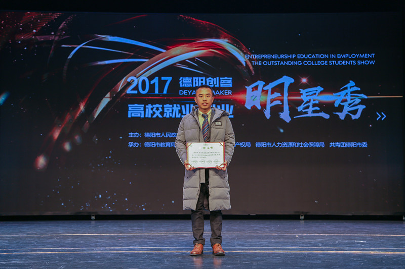 12月21日下午,由德阳市政府主办,市教育局、市科知局、市人社局、共青团德阳市委承办的“2017德阳创客•高校就业创业明星秀”活动,在德阳演艺中心隆重举行,现场颁发了“2017德阳高校创客之星”、“未来职业之星”、“就业创业教育之星”。 此次活动,由管理工程系郑敏副书记带队,一行近30人参加颁奖典礼。我院三位师生获得表彰,分别是高成老师获“就业创业教育之星”称号,郭靖同学获“创客之星”称号,闫崇桂同学获“未来职业之星”称号。 近年来,为了进一步提升大学生的职业素养和就业能力,弘扬大学生奋发图强的创新创业精神,营造良好创新创业氛围,我院大力开展学生创业活动,建立创新创业实践基地,打造核心教师团队,搭建创业交流平台,为学生的就业创业铺路,为学生的发展指航。在多年的努力下,我院大学生创业思路活跃,明星创业项目如雨后春笋般涌现。今年10月,由高成老师带队参加“蜂云谷杯”第三届四川省“互联网+”大学生创新创业大赛,获得1个银奖和1个铜奖,高老师团队已在该项赛事中三年累积获得6块奖牌。 此次表彰活动中,我院管理工程系舞蹈团原创群舞《青春创业路》,也在八所高校节目选拔中脱颖而出,代表学院参加了颁奖典礼展演,20位学生以专业、深情的演绎打动现场观众,观众报以热烈的掌声,舞蹈还得到主办方和兄弟院校的好评。