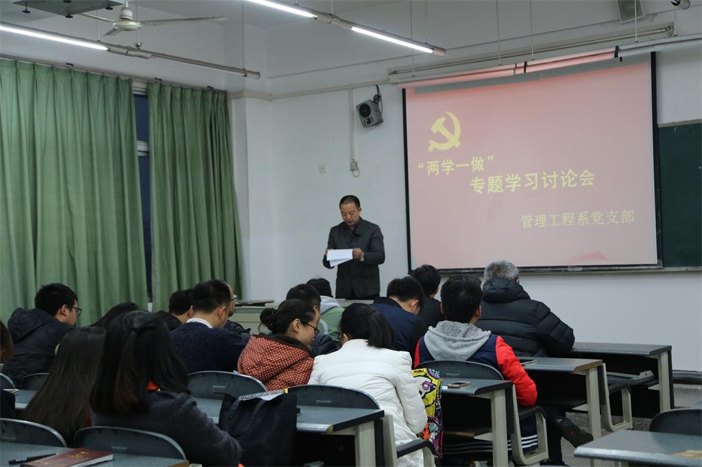 2016年11月04日,管理工程系党支部在明智楼419教室组织召开了管理工程系党支部召开“两学一做”第三次专题学习讨论会,会议由系党支部书记蒋隆兵主持,系部教师党员和部分入党积极分子参加会议。