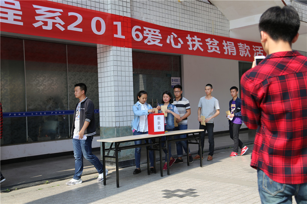 为响应党的十八届五中全会号召,弘扬中华民族扶贫济困传统美德和友善互助精神,学院在全院范围内开展了爱心扶贫捐款活动。管理工程系党支部于4月26日下午4:10集中组织教职工及各班学生代表在劝学楼进行现场捐款。