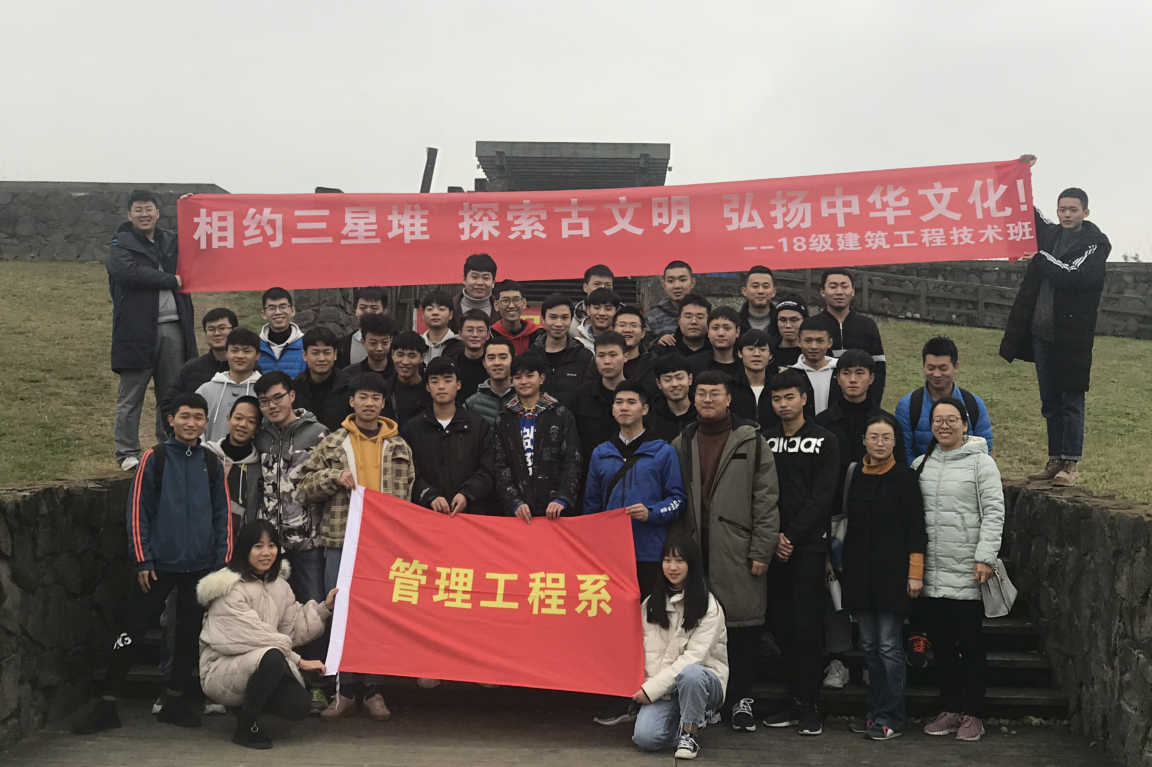 为提高管理工程系建筑专业学子专业知识应用能力,建筑工程和工程造价专业两个班一百余名学生在郭凤双老师和黄敏老师的带领下,前往广汉市三星堆古遗址展开了“探寻古蜀建筑,传承中华优秀文明”的主题团建活动。