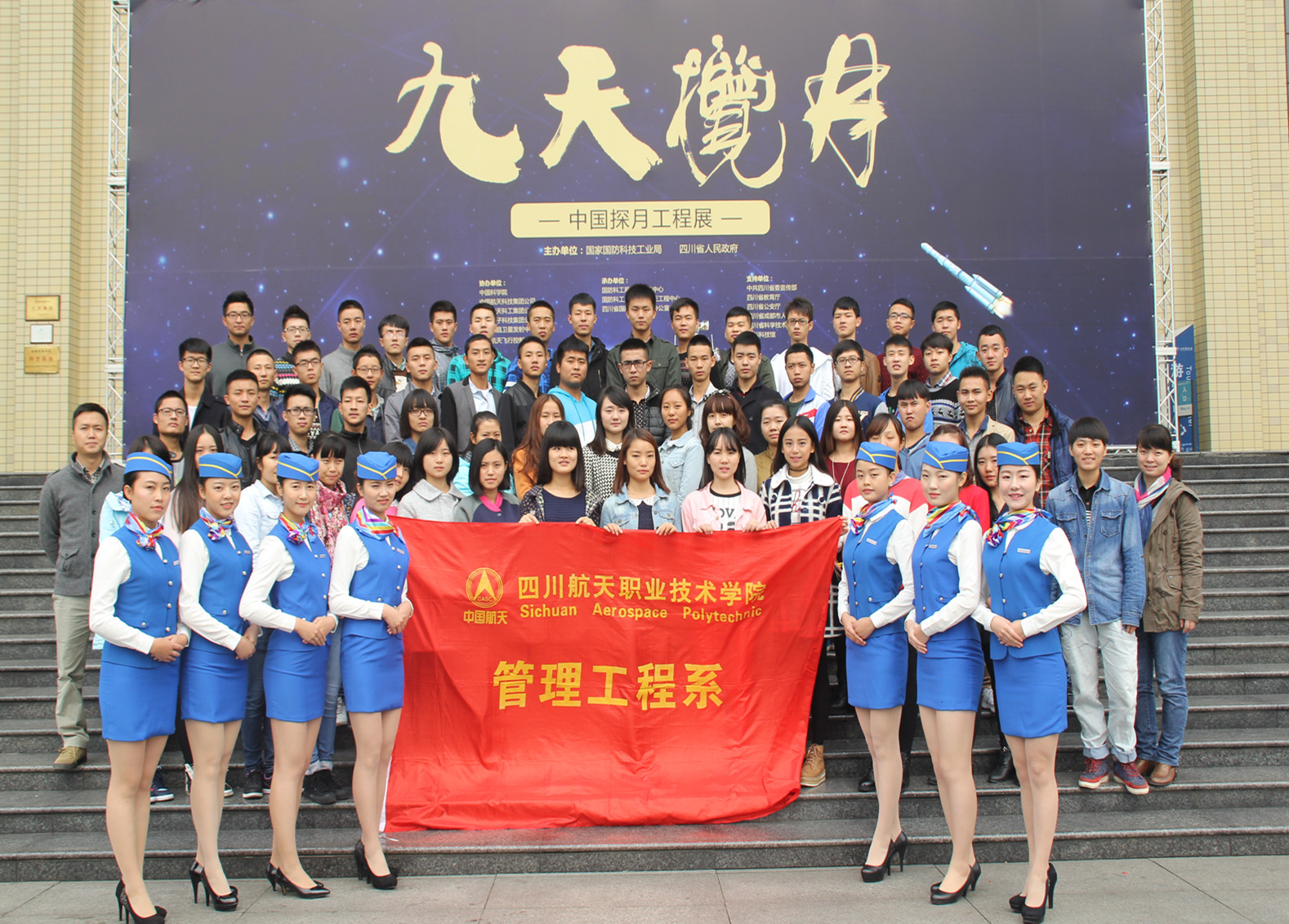 为宣传探月工程,展示航天科技成就,普及航天科学知识,激发同学们的爱国热情,四川航天职业技术学院管理工程系于11月6日组织近百名学生参观了在四川科技馆举办的航天科技展览会。