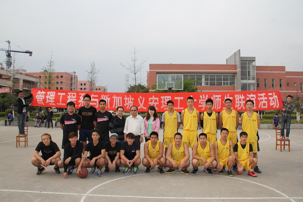 2013年3月25日下午4点30分,四川航天职业技术学院新加坡留学生篮球队和管理工程系篮球队进行了友谊联赛。新加坡义安理工学院国际发展处主任Mr Koh Wee Hiong(许伟雄先生)以及其他教学部门领导一行12人、留学生带队教师、航天学院刘家騑院长、夏华副院长、国际合作部刘静部长、管理工程系周东主任等相关领导观看了比赛。