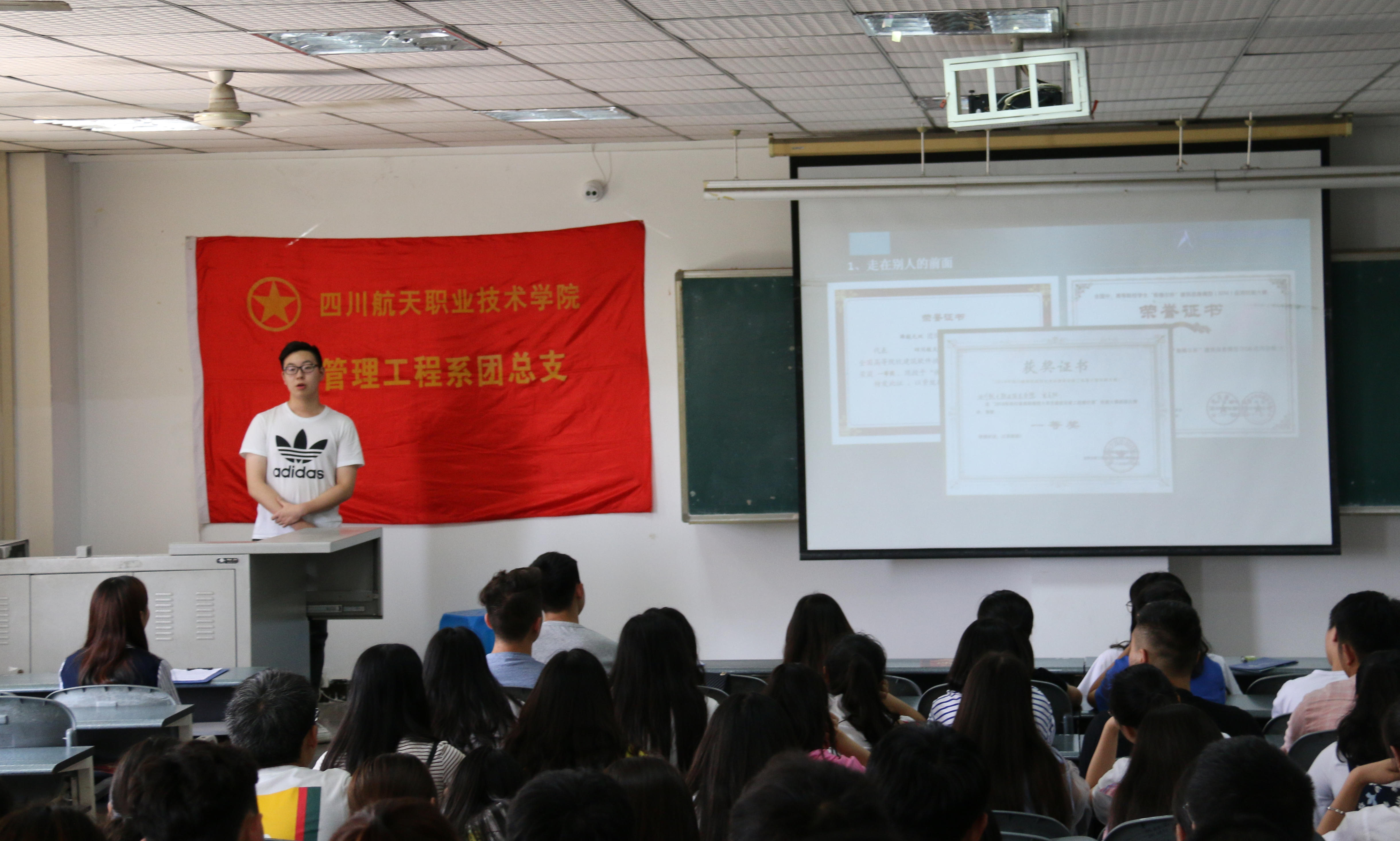 为了更好地引导我系团学骨干培训班学员认真学习党的十九大精神,提升团学骨干的整体素质,促进毕业生和在校学生的信息交流,我系团总支于6月13日下午4点在明志楼304教室开展了优秀毕业生团学骨干培训分享交流活动,此次活动邀请到我系2015级四川省优秀毕业大学生代表:宋东阳、肖帅等同学为105名团学骨干做现场分享交流。