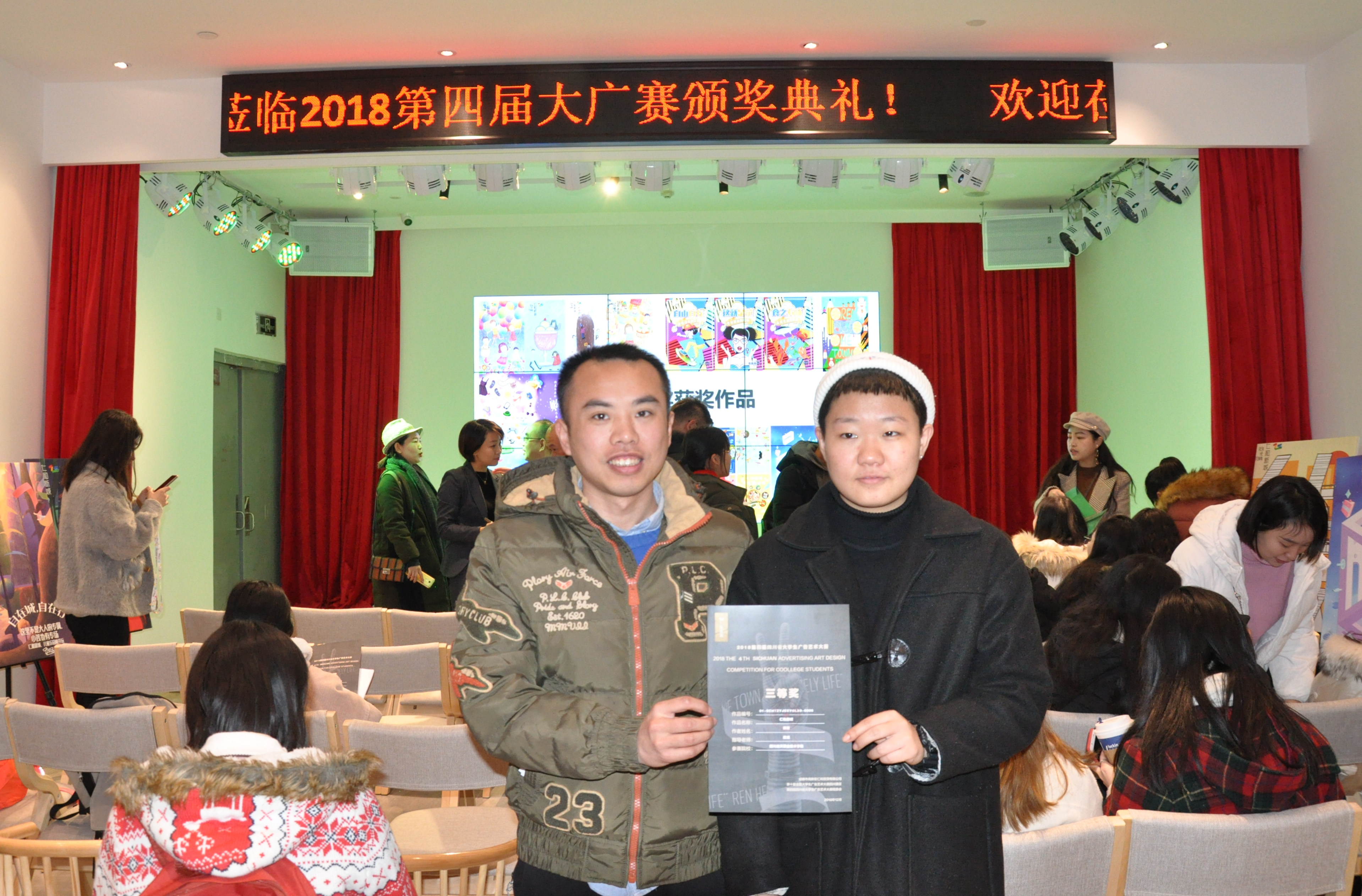 12月9日,颁奖典礼在成都市府城大道仁和新城4楼大隐书店举行,管理工程系2017级市场营销专业的田茜同学为仁和新城开业设计的平面广告荣获三等奖,高成老师参与指导。
