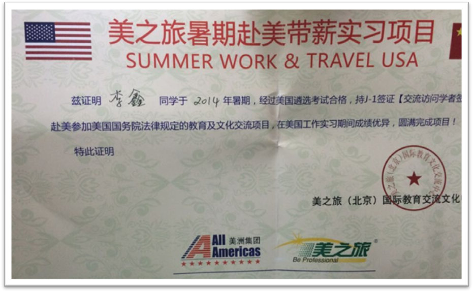 通过这次比赛以及赴美带薪实习的经历,给我的影响不仅仅只是一本证书,一纸证明那么简单,更多的是我从中所体会到拼搏的快乐和收获的自信,以及自己只身一人在国外的工作生活中也很好的锻炼了我的独立能力。相信自己在以后的生活学习中,不论遇到什么困难,都坚信自己定会闯过难关。