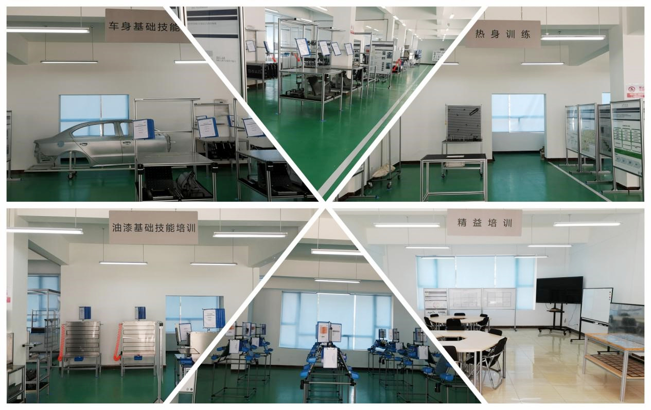 2019年6月4日,学院上汽大众高技能人才联合培养基地(以下简称培养基地)正式建成启用。该培养基地占地500余平方米,设备总投资100余万元,建有企业文化展示室、精益培训室、热身训练区、车身技能培训区、油漆技能培训区和总装技能培训区共六个功能模块。该基地是由合作企业建设的大型校内培养基地,对学院的发展具有里程碑的意义,代表产教融合进入到了一个崭新的阶段。培养基地于6月4日顺利完工。