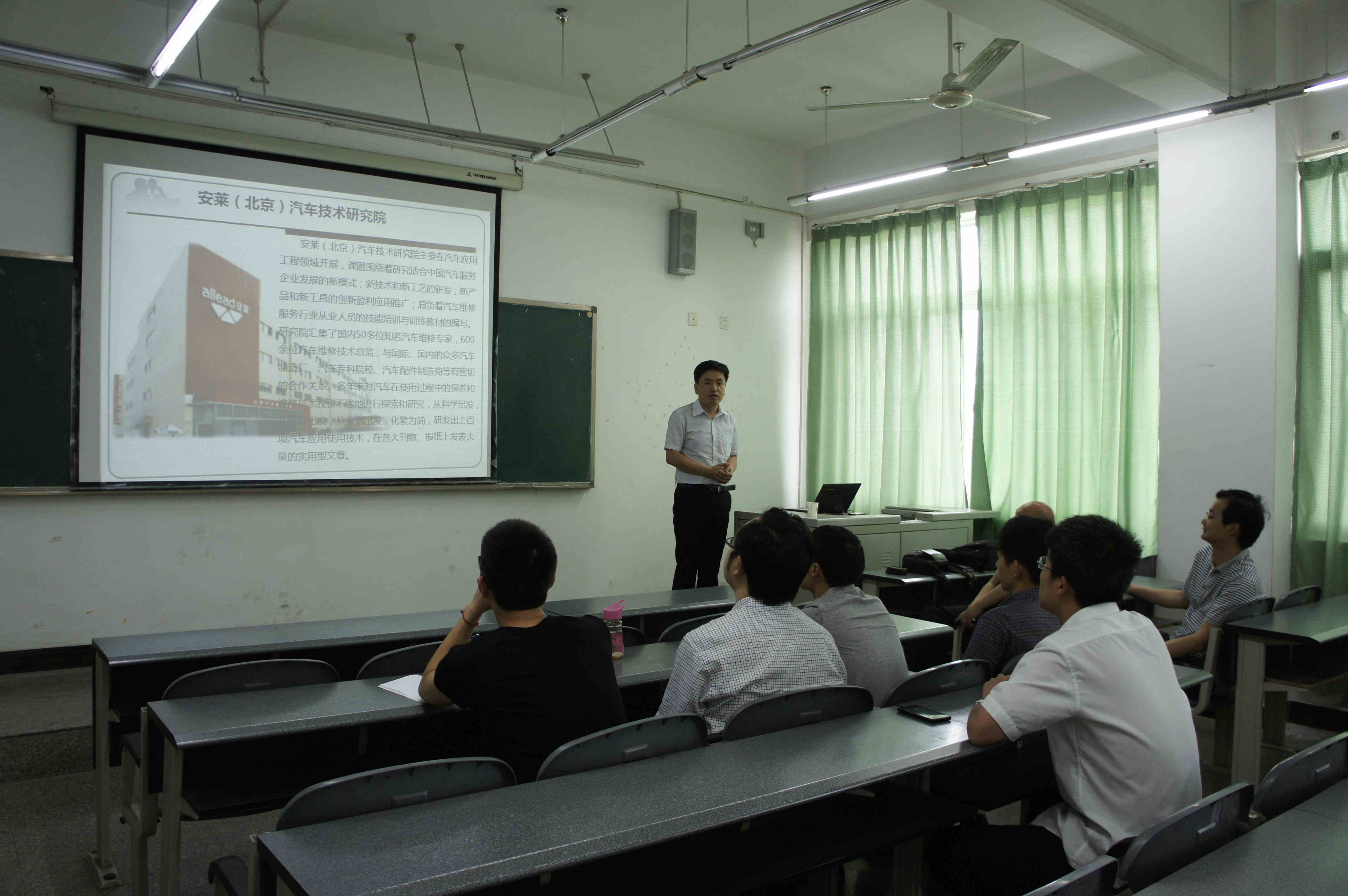 5月28日下午,安莱(北京)汽车技术研究院李洪港讲师应邀来我院,在明志楼为汽车制造与装配示范专业建设小组老师做了题为《汽车专业平台建设实用技巧》专题讲座。汽车系系主任黄昌志、系副主任高卫明及系重点专业负责人参加了此次讲座。