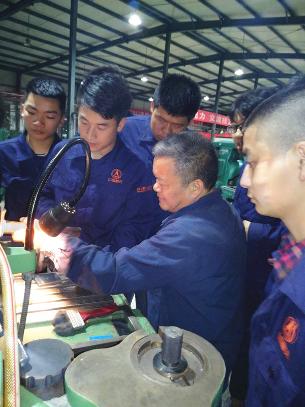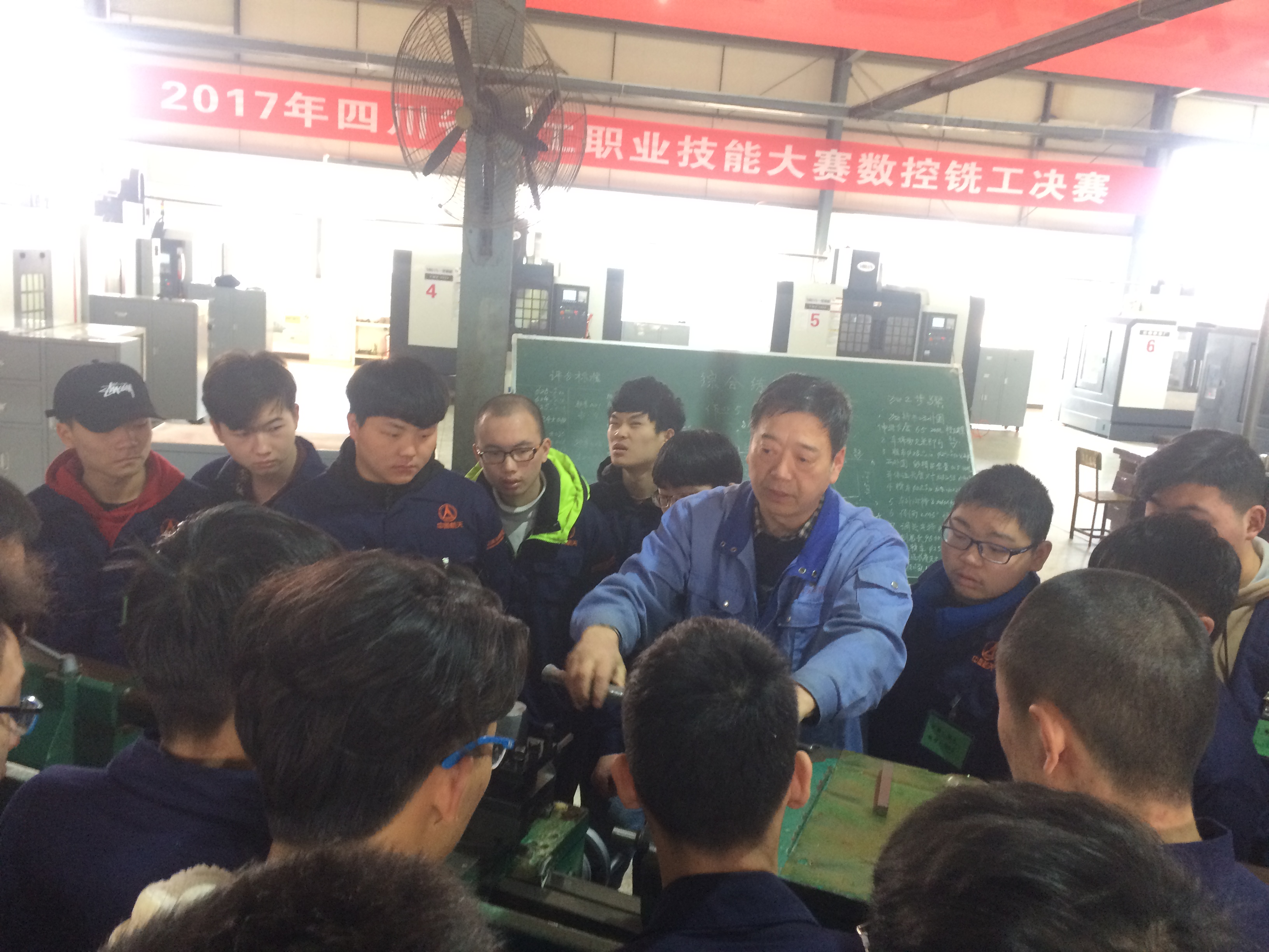 晚上9点30分实训教学部的灯光依然亮着,老师们正在悉心指导着学生,学生们也干劲十足地练习着技能,大家撸起袖子加油干,只为着同一个目标——备战技能竞赛!这也是学院首次承办的四川省职业院校技能大赛高职组“复杂部件数控多轴联动加工技术”赛项。 为了备战省赛、国赛、校内技能竞赛,实训教学部的老师们不分节假日及业余休息时间,加班加点指导学生提升技能。日以继夜地调试机床四轴部分及参数部分,并对三爪卡盘、压板螺钉、尾座顶尖、法兰盘等进行了重新设计、加工、安装。面对时间紧、任务重、人员少等困难,各位老师在部门领导的组织安排下,不仅按质按量完成常规教学任务,同时还针对各项竞赛对症下药更新教学内容,创新教学手段,并根据学生自身具体情况有的放矢地计划训练内容。在面对几乎零基础的参赛学生,老师们根据三项竞赛的具体要求,在保证安全的前提条件下,制定了详细的训练计划,将其分为基础模块、专门化模块、综合模块、模拟比赛模块开展技能训练。并在按模块指导学生训练时量化标准,通过基本功的反复练习,让学生达到在3分钟内完成工件的夹紧与对刀的目标,并在后续模块加工工件时,让学生拥有机械加工工时意识,保质保量的完成练习工件,达到每练一套工件都有所进步的目的。程序、参数录入时要求学生必须双手操作,以提高操作效率及精准度,每个模块结束后,老师们组织学生讨论小结,取长补短。同时老师们与时俱进地使用了信息化教学手段,与学生一道观看正确操作视频,在观看视频的过程中引导学生一同讨论正确操作应注意的细节,让学生快速掌握正确的操作姿势。并使用数控仿真软件强化学生的熟练程度,减少撞刀率。基于教学内容、手段的创新,让学生们收益明显,终于功夫不负有心人,参赛学生在比赛中取得了“一等奖”,“二等奖”的好成绩,特别是在成都航空学院参加的四川省高职院校大学生“工业产品数字化设计与制造”赛项,学生们勇夺“一等奖”,实现了参加校外同类竞赛的突破! “抬望航天梦,俯刻匠人心”,通过这一系列的竞赛让学生们的技能在短时间内得到飞速的提升,并形成了以点带面、从线到面的效果,同时也锻炼了我部的教学团队,将竞赛的成果转换成了教学资源,融入到了日常教学当中,优化了人才培养模式,为我院优质高校建设添砖加瓦。