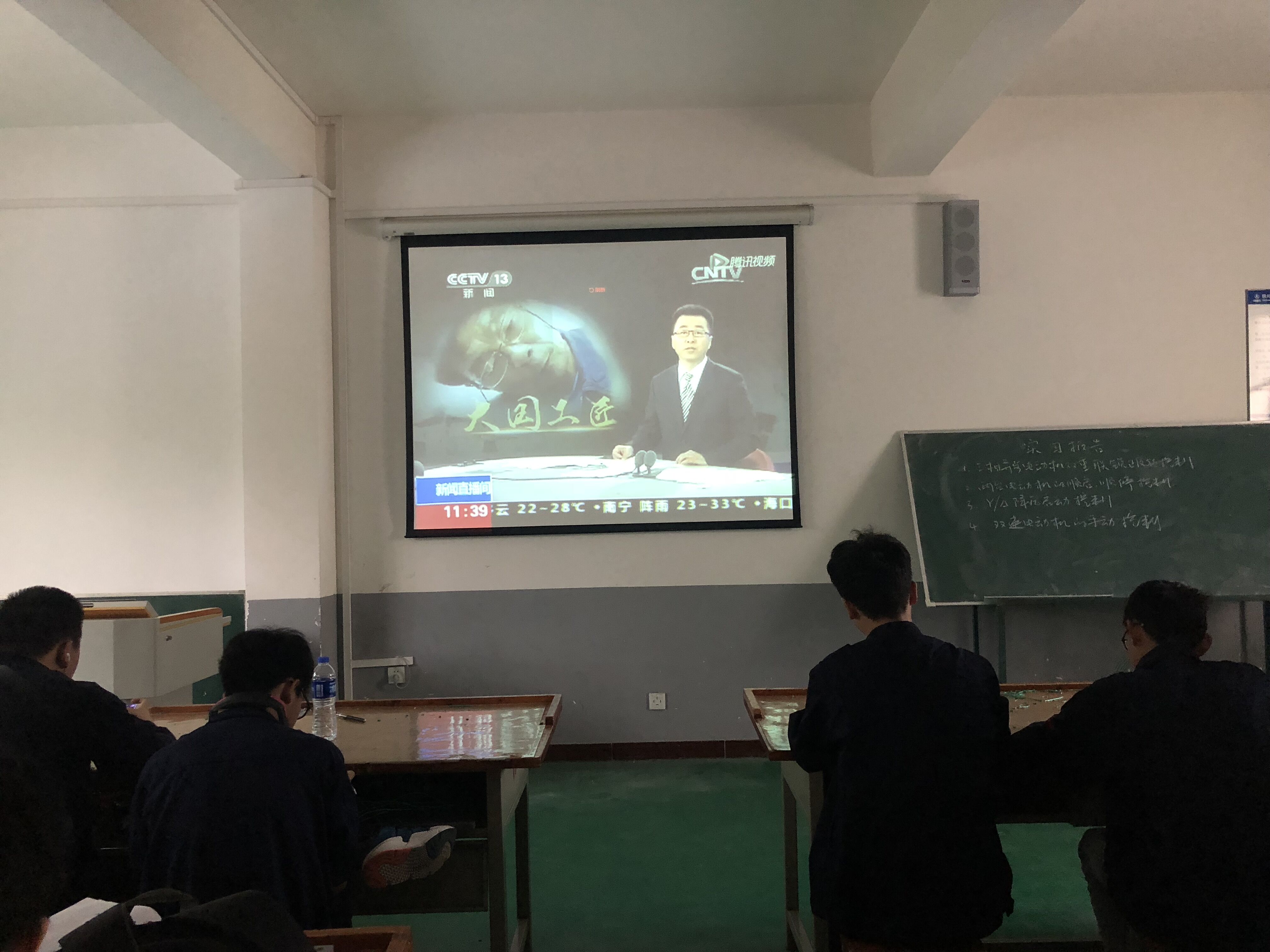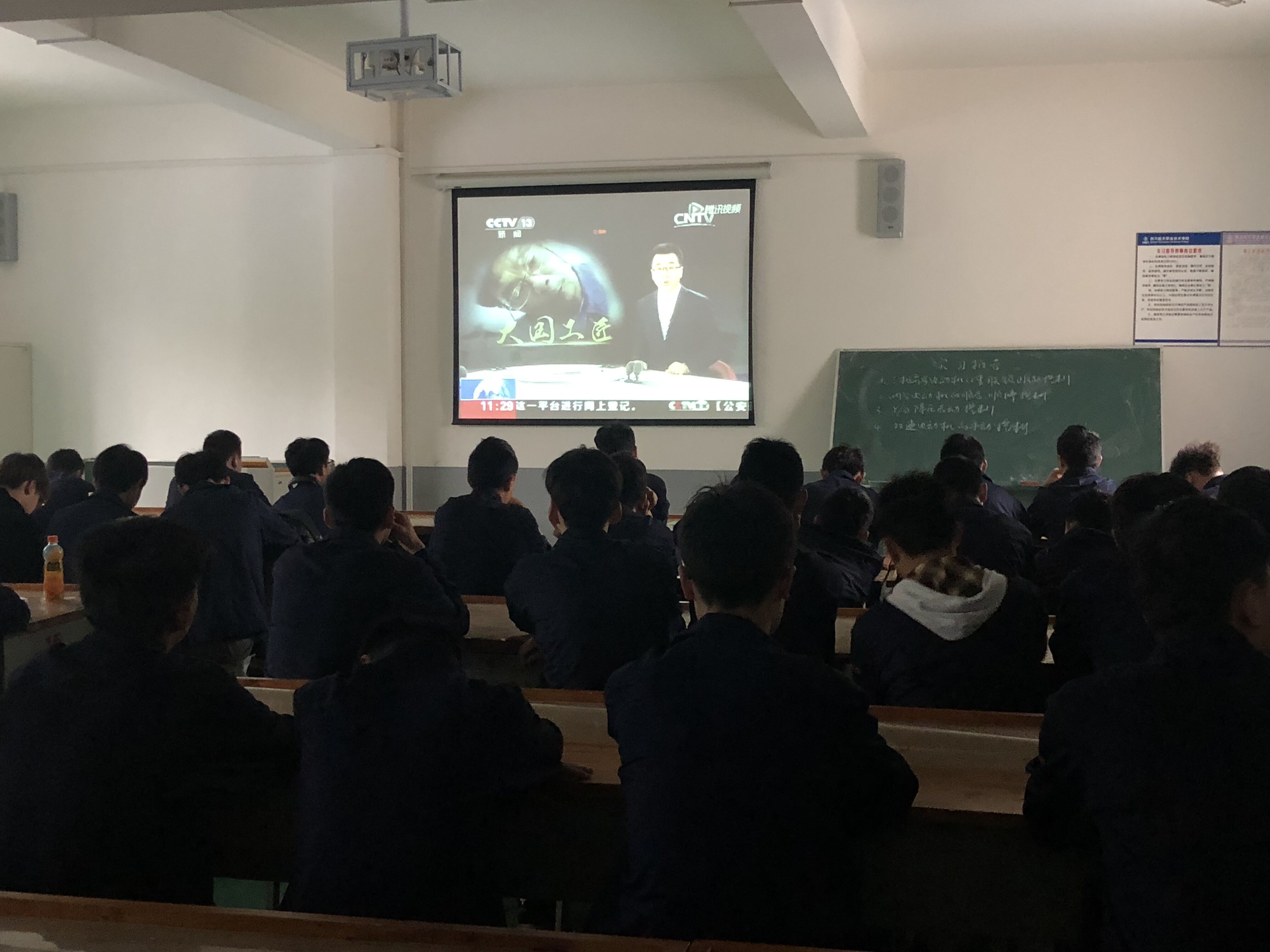 4月19日下午,实训教学部实训钳工的学生暂停了手上的练习件,在老师们精心组织与安排下,正津津有味地观看《大国工匠》和《挑战不可能》。