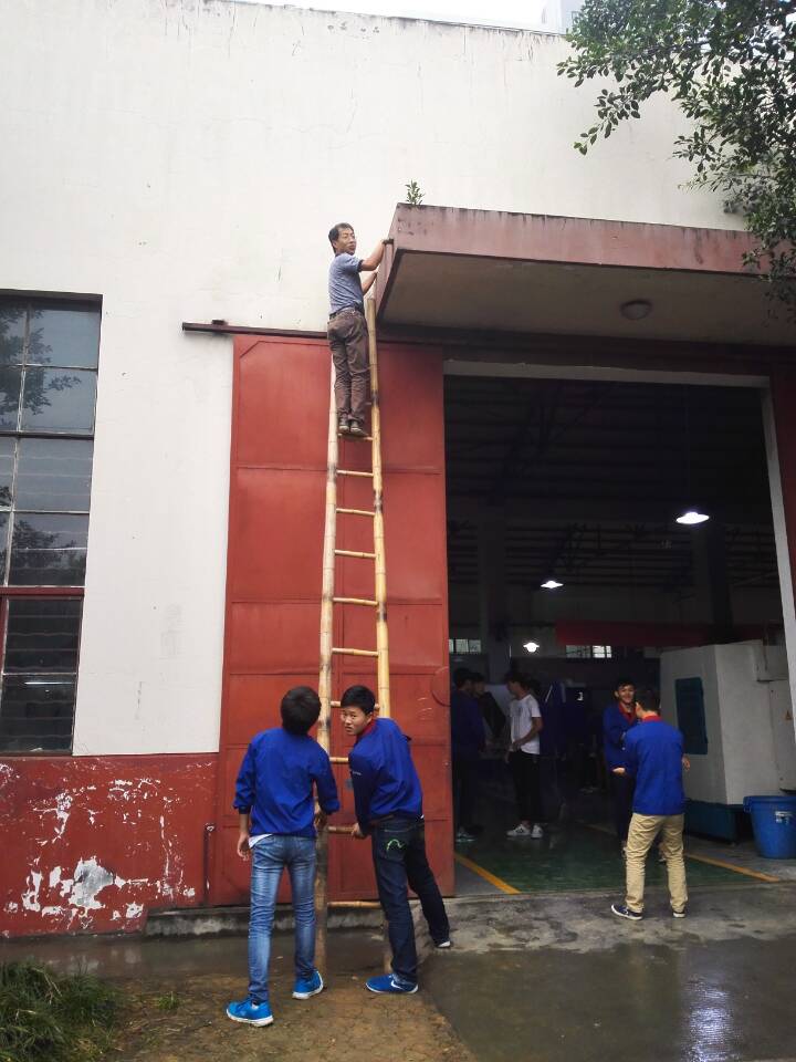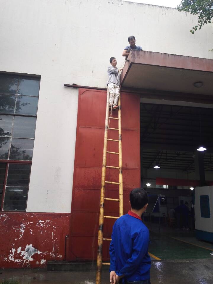 今天下午4:10下着大雨,在罗部长、张副部长、薛老师、彭渡川老师,张继军老师的组织下,张副部长搭天梯~冒风雨解决厂房水管堵塞问题,经过十分钟的时间终于疏通管道。就那么一会功夫,张副部长手上、脸上被蚊子咬了很多疙瘩,充分体现了我们实训教学部门发扬艰苦奋斗,自立更生、乐于奉献的精神!(谭飞报道)