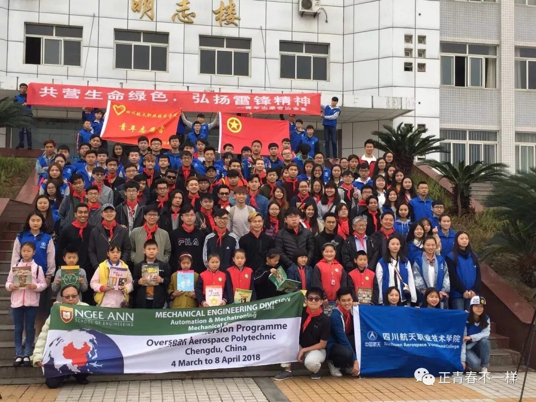 今天的小航要跟大家展示自己成熟的一面,毕竟小航我可是曾经立志做一名美貌与智慧并存的...... “人生在世,重要的在于做人,做一个对社会对人民有益的人” 在四川成都龙泉驿和广汉的四川航天职业技术学院各个角落都活跃着一支支学雷锋行动小组,人们把他们统称为——航院志愿者。 志愿服务,一个经久不衰的话题,随着一代又一代人的传承和发展,雷锋精神正被越来越多的人们所熟悉,也逐渐走上国际舞台,四川航天职业技术学院为深入贯彻学习两会精神,坚持改革开放思想,将志愿活动提上课堂,与新加坡交换生在教室里共同学习雷锋精神。 为了让新加坡的同学们有更深刻的感受,志愿者们特意邀请来了平常周末辅导的留守儿童们亲手为他们带上了“红领巾”。 春的故事 非洲的朋友,总是羡慕处于亚热带季风气候的“我们”。在春天这个多梦、多姿,生机勃勃的季节里,绿色,柔和得足以净化所有的杂质;我们拥有他人所没有的,才更应该心存敬畏。 3月12日的植树节,又出现了志愿者们的身影,猜猜看他们在干什么呢?知道啦,小航知道你们聪明过人,不用猜也知道,那你们亲手种过树吗?有为属于我们的绿洲浇过水吗? 每个人的能力有大小,但只要有一颗真诚的心,就必定是一个对社会有益的人。心底无私天地宽,我们的生活就充满阳光。 在活动的最后,新加坡的同学们为了向小朋友们表示感谢和关爱,送上了签有他们名字的课外书,忧伤的是,想念出他们的名字还真的有一定难度,毕竟中国人得爱国不是?得了吧,这种话说给你爸妈听,能忍住不打你,你上辈子估计拯救了银河系。否则,你可能是下一个《小萝莉的猴神大叔》 当我遇见你时,你给我的是一种温暖的微笑;当我靠近你时,你给我是一种不求回报的帮助;当我走近你时,才明白其实你也有悲伤,有迷茫,但是你却很坚强,谢谢你,善良的人——志愿者。 青春啊,永远是美好的,可是真正的青春,只属于这些永远力争上游的人,他们有所为,有所不为。
