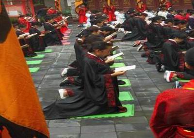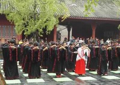 四川航天职业技术学院大学生着汉服祭孔子诞辰