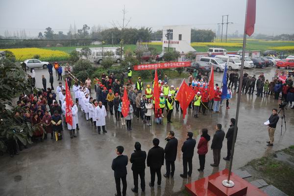 阳春三月,春风徐徐, 我打鸭子河边走过, 你在航天桥上风景, 我在航天桥下看钓鱼, 然,天空Duang了一下, 泛起朵朵爱的云彩, 只见河对面的桂红村社区, 人潮涌动,热闹非凡, 听一番才晓得, 那是四川航天职业技术学院团委3.5集中行动日。 “志愿新农村建设,一起来”, “关爱智障留守儿童,阳光成长”, “青春志愿行,温暖回家路”-高铁服务 “殷色希望,血脉相连”-无偿献血 随手志愿,就近就便做志愿。 将雷锋精神再传递。