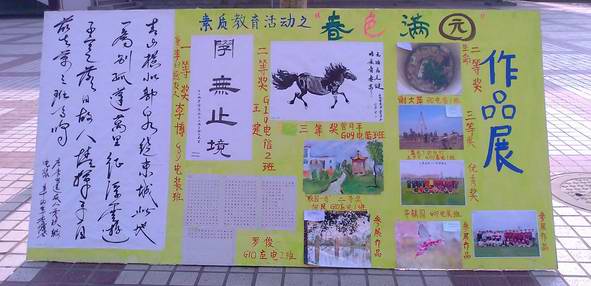 为迎接建党90周年大庆,展示学院发展成就和学子们蓬勃向上的精神风貌,学院电子工程系于2011年4月中旬面向全系同学举办了以“春色满园”为主题的学生摄影、书画、绘画展。