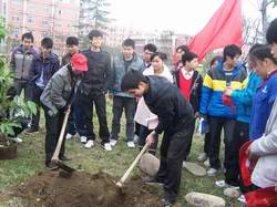 [/float] 3月11日,电子工程系团总支学生会实践部和院青志协联合开展了“我为航院植棵树”主题活动。11日中午,系学生会主席王东升同学和院青志协干部共同将代表电子工程系团总支学生会和院青志协全体成员美好祝愿的黄桷树种植在了学院川北南路旁的绿化地里。并在树旁摆放了一块雕刻着“祝航院明天会更好”的石刻以作纪念。本次活动,不但为学院增添了一抹绿,随黄桷树种下的,还有同学们感恩学院,为学院祈福的心。