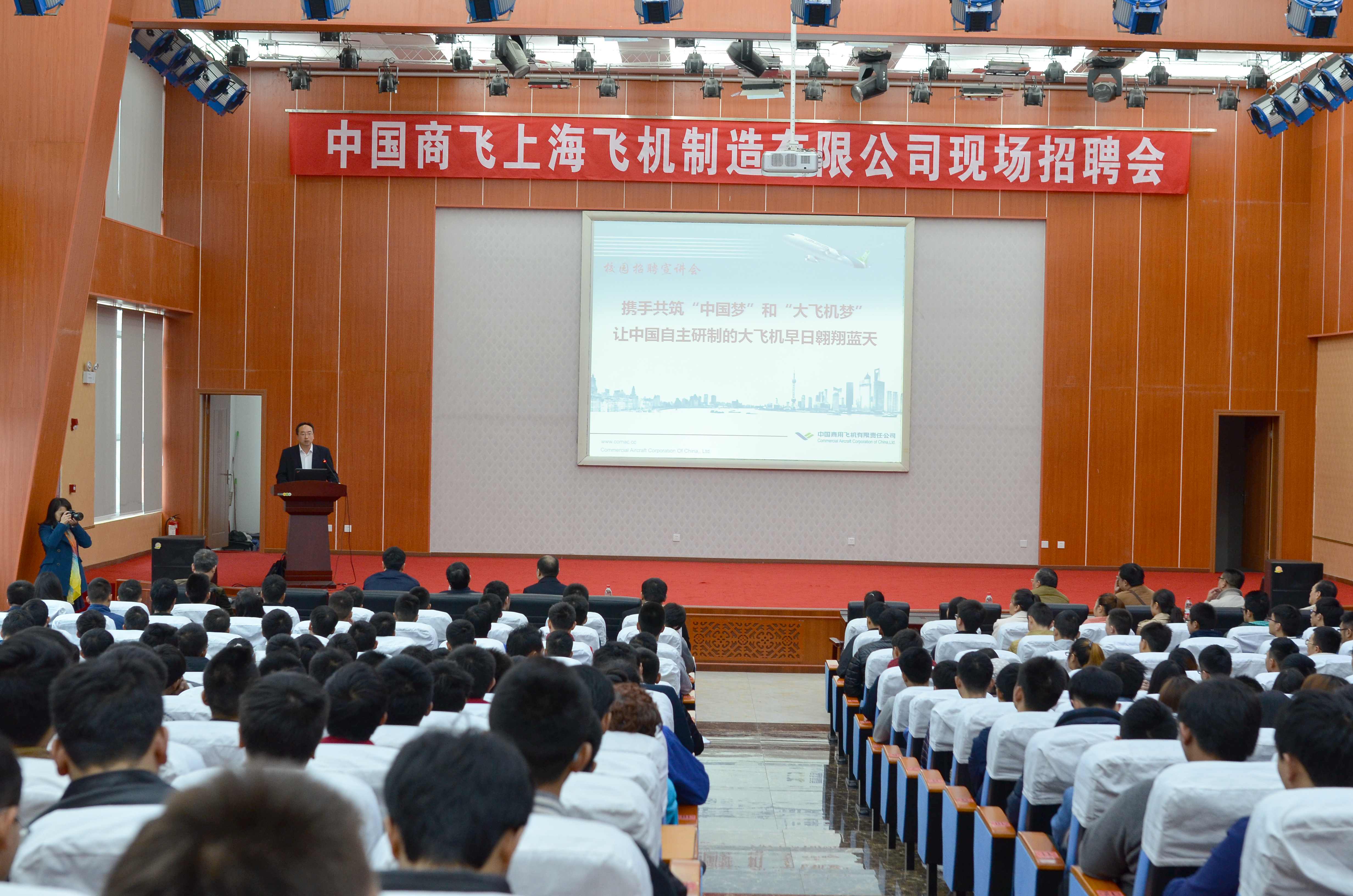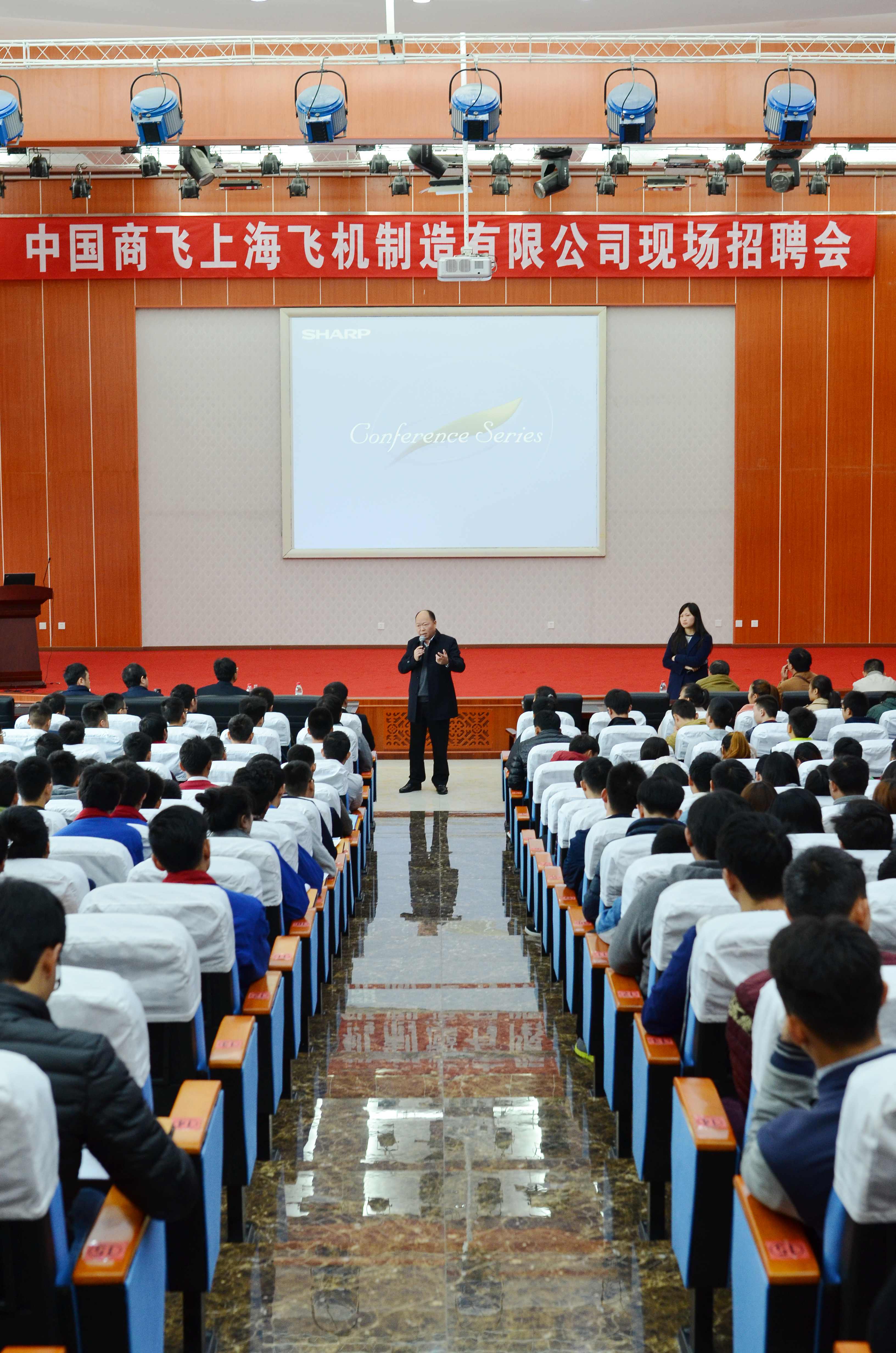 2015年11月13日上午,中国商飞上海飞机制造有限公司人力资源部马部长一行来到广汉校区,对飞行器制造系、电子工程系2013与2014级学生进行现场招聘宣讲会。学院李晓敏副院长、飞行器制造系胡文彬主任、周林书记和电子工程系肖康书记出席了宣讲活动。