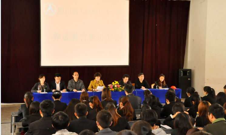 学院学生工作部和教务处的老师们分别在两校区组织召开了养成教育推进大会。参会的同学主要有学生会、青年志愿者协会、自律委员会的同学们以及全院各系部班级学生干部,会场秩序井然,取得了很好的宣传教育作用。