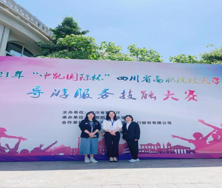 4月29日,本系G20旅游管理专业2班学生张雨婕在老师的带领下参加了一年一度的由四川省教育厅主办,成都职业技术学院承办、北京中凯国际研学旅行股份有限公司协办的2021年“中凯国际杯”四川省高职院校大学生导游服务技能大赛,共有来自全省37所高等职业院校的37位选手参加了本次比赛。